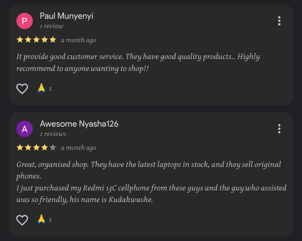 I bought my HP Envy from Reeltec it's now 5yrs now and everything is as good as new { Munya }Very friendly customer care and great services as well you should pass by --KudzieVariety of products and very authentic all original recommend to anyone!! --Paul"Finally, a place I can trust for real, high-quality gadgets." – Sarah P.